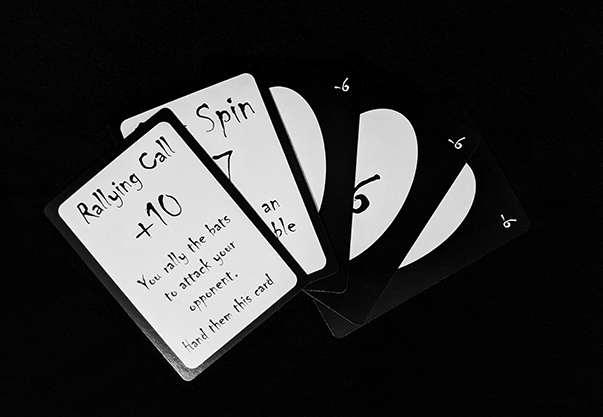 The ground collapses and a sink hole swallows you and a friend! After the first half hour of constant screaming and endless falling, it dawns on you that you’ve fallen into a bottomless pit…. And this could take a while. Out of the sheer boredom of the ensuing hours of falling, you and your compadre come up with this game to complement the bottomless pit experience!