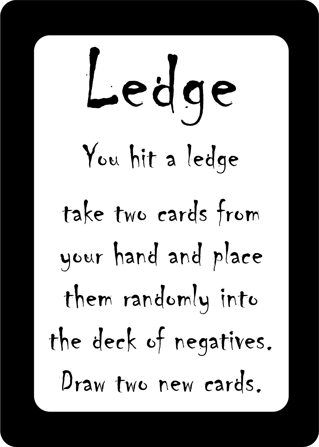 Players start their turn by drawing a card. If a special card is drawn, do as it says.Thereafter, the player has the option of asking their opponent for any negative they may want.